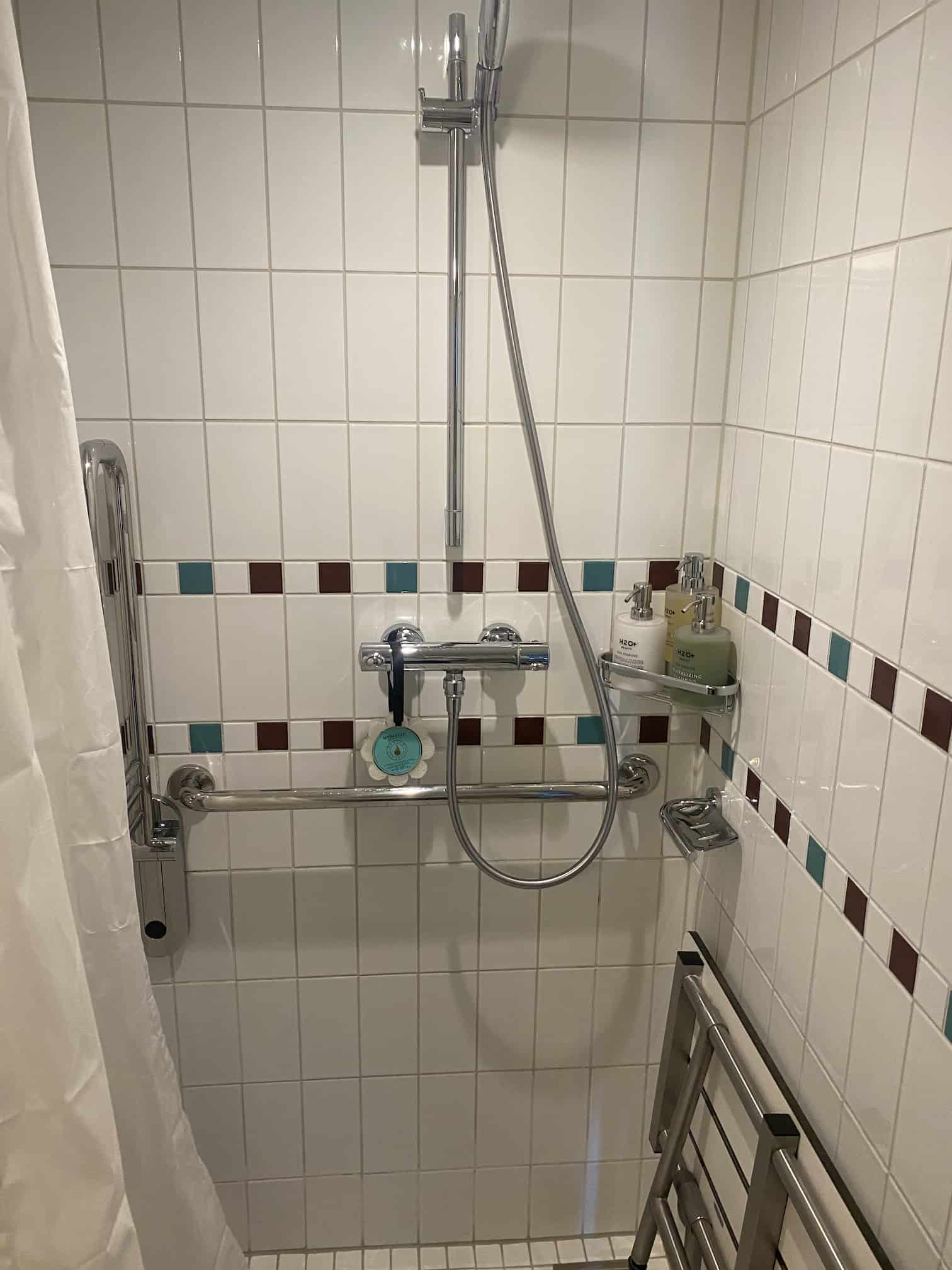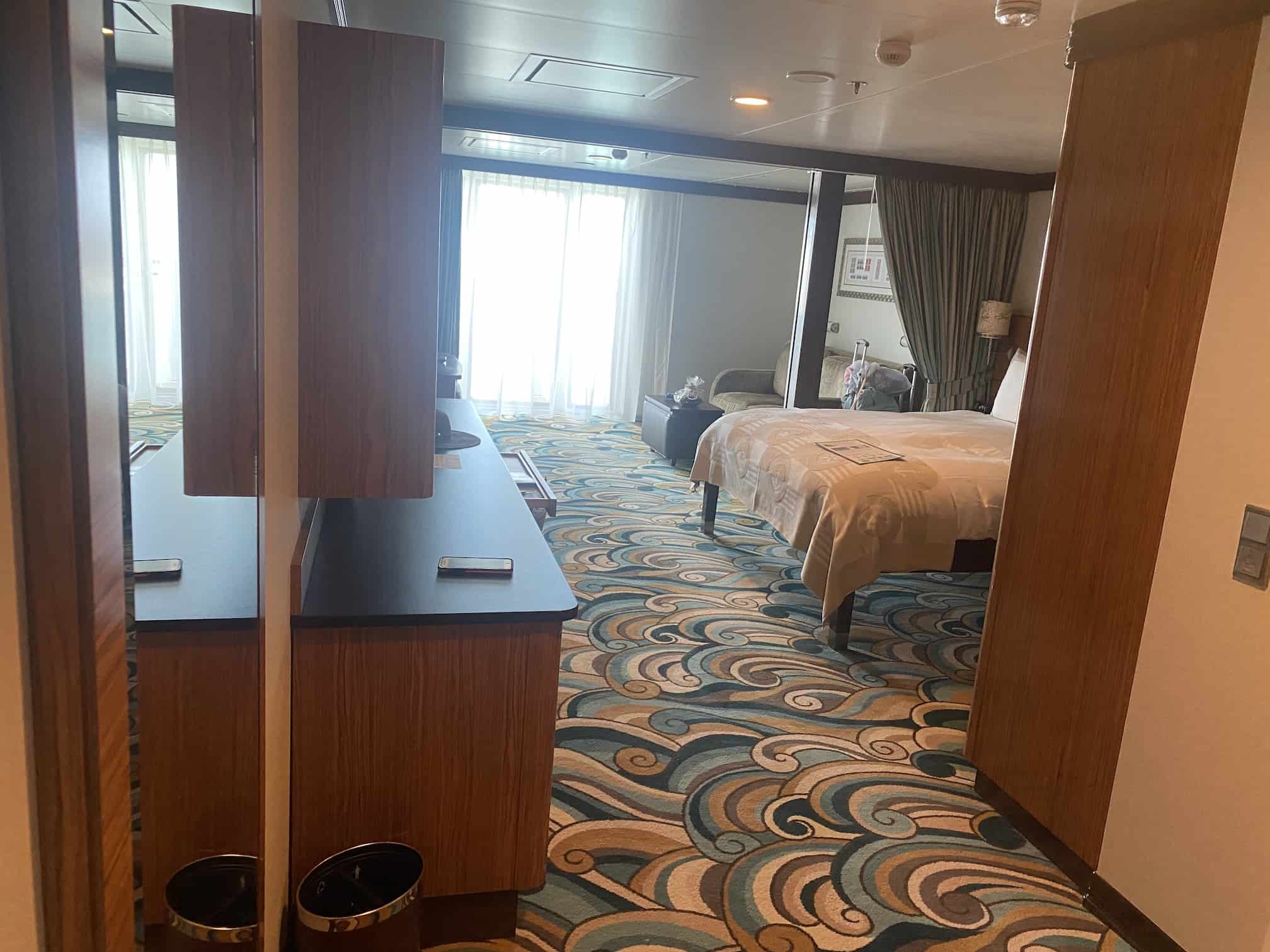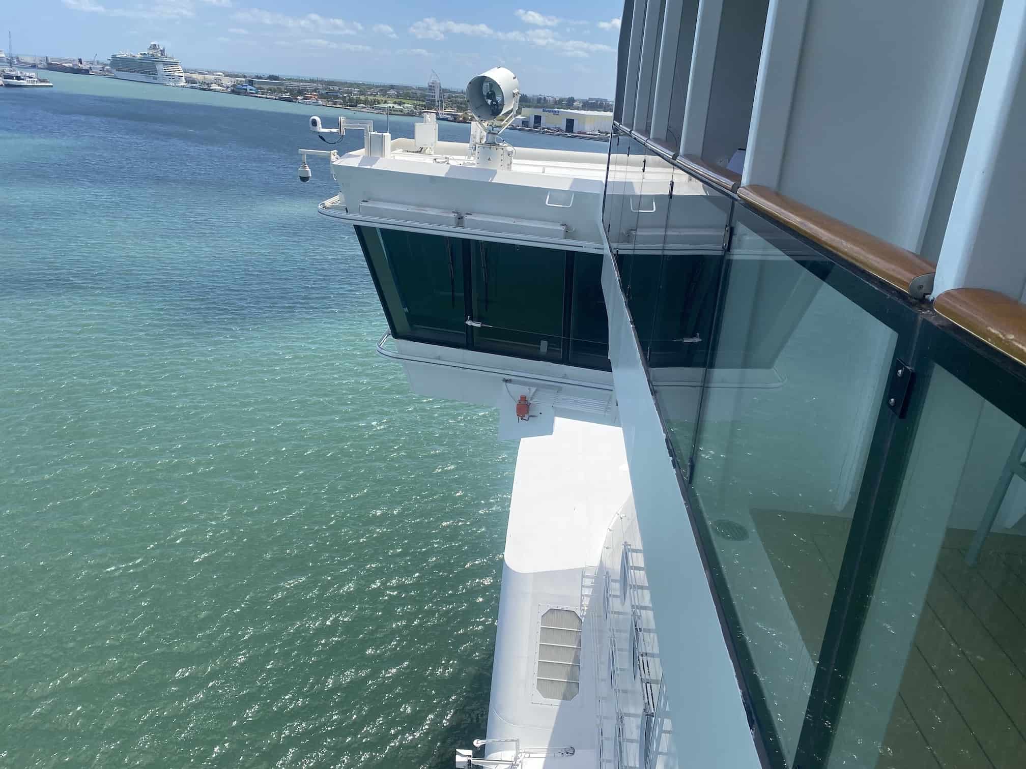 Our friend, Sarah Tolch, recently went on the Disney Dream. She upgraded at the port to stateroom 11000, which is a 3A – Concierge Family Oceanview with Verandah – Accessible. The room is located on Deck 11 all the way forward on the Port (left) side of the ship and sleeps 5. The room has an awesome verandah with views of the ship’s bridge wing! It is also an accessible stateroom, with a single room configuration bathroom.