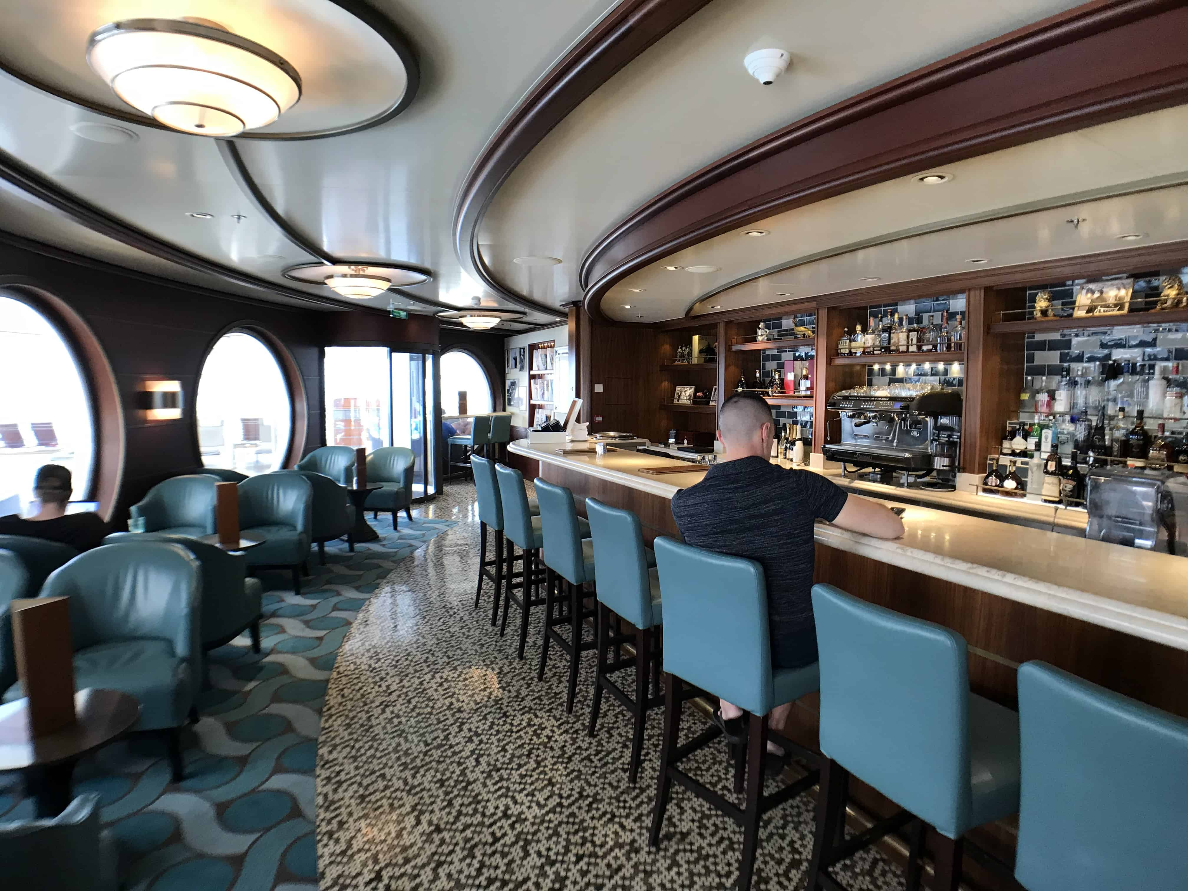 Each of the sitting areas has a nice porthole to let in light and to allow the patrons to look out. Some of them face out towards the adult pool while others face towards the side of the ship (giving you a slightly obstructed view of the ocean.) You can also get your drinks and take them outside to enjoy.