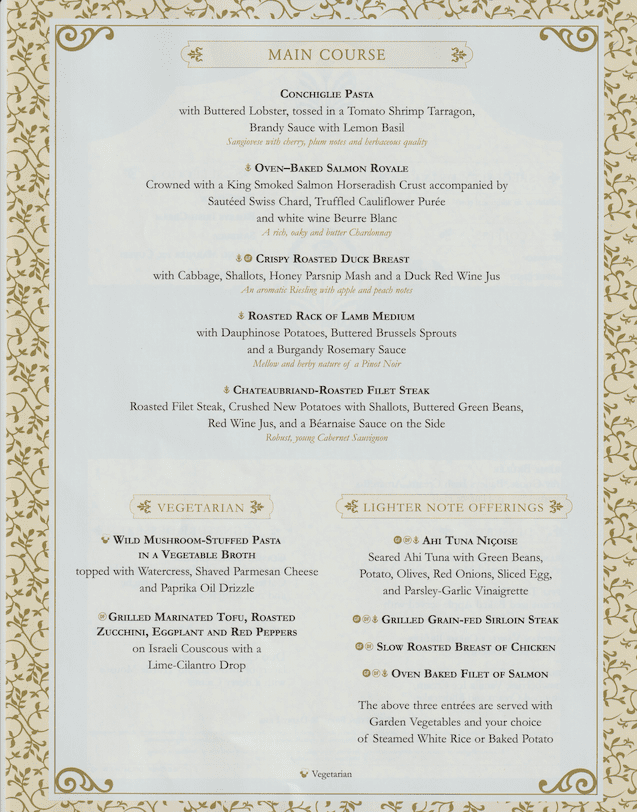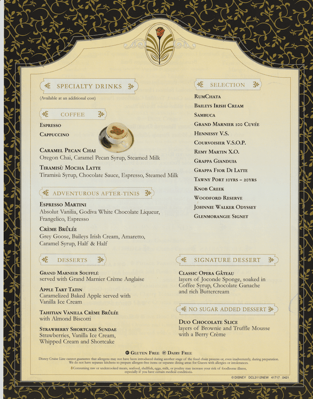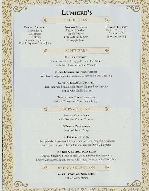 Here is the 2022 Lumiere’s Dinner Menu from our recent January cruise on the Disney Magic!