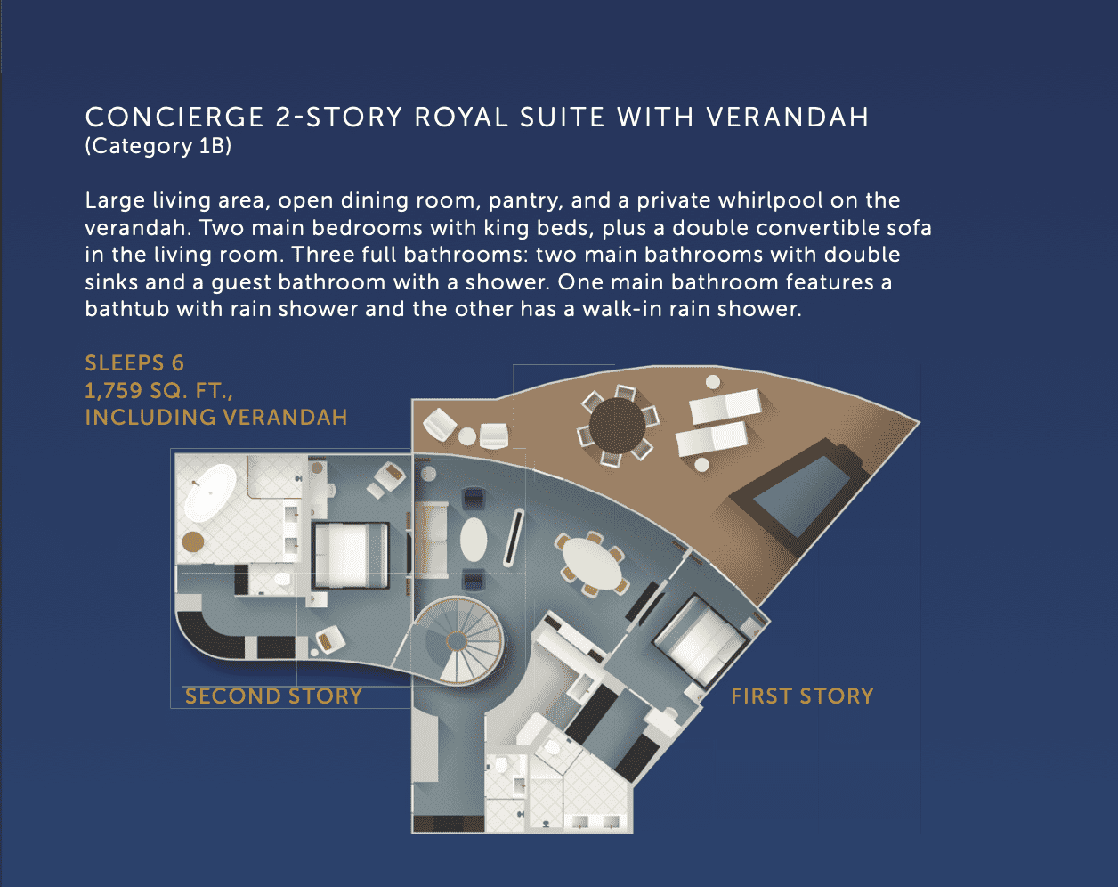 Our friend Chris (@CHRIS_MAGIC_DCL) went on the Disney Wish for a 4 night Bahamian sailing (that turned into a six night sailing because of Hurricane Ian) and stayed in the Princess Aurora Royal Suite. The room is located on the port forward side on Deck 13/14 . The room holds six people and 1759 square feet, including the verandah.