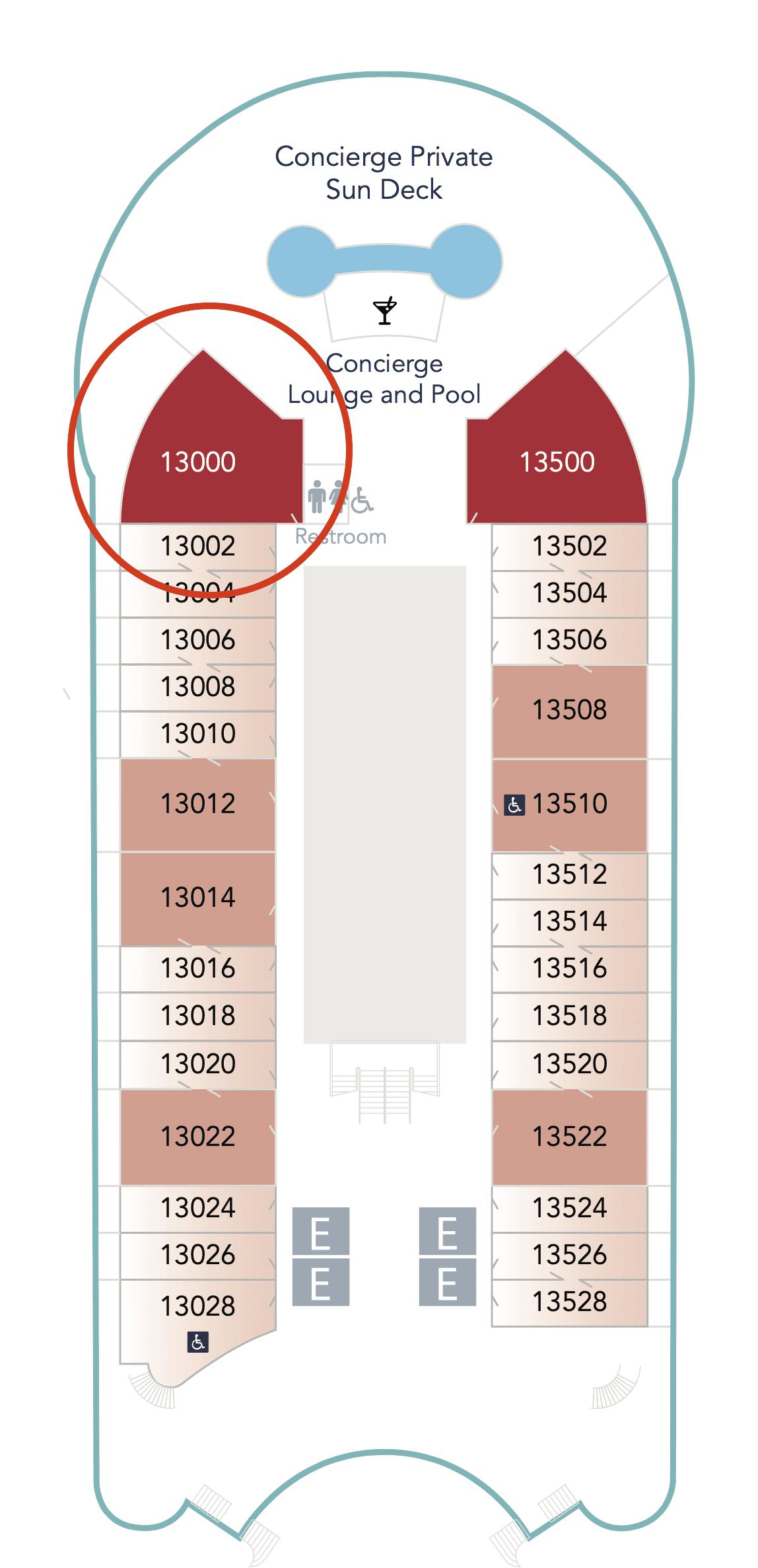 The room is right next to the Concierge Sun Deck, including direct access from the verandah (which will be shown later).
