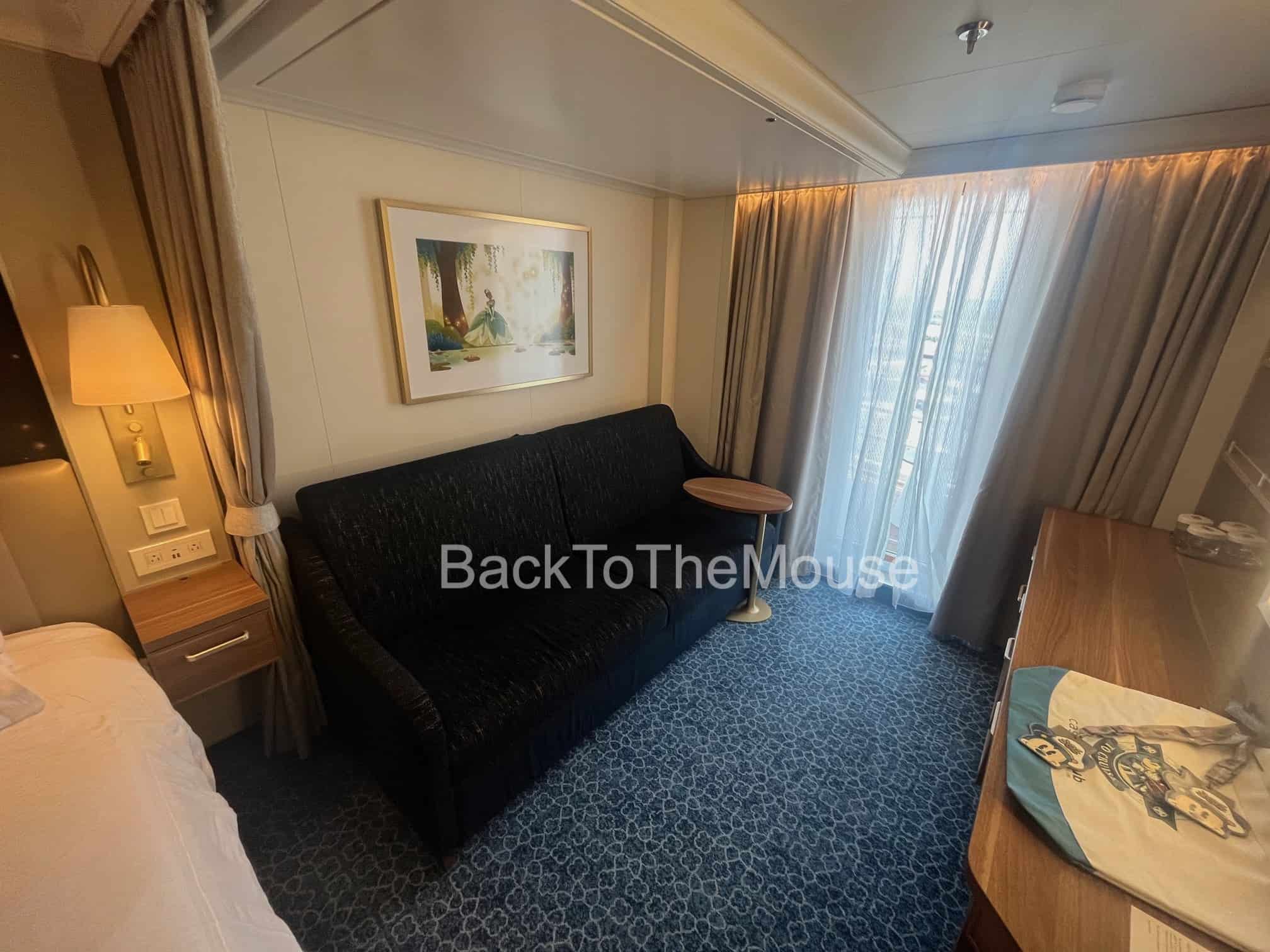 Our friend, Frank DiMatteo, recently went on the Disney Wish. He and his family stayed in stateroom 8638, which is a Category 5B – Deluxe Family Oceanview Stateroom with Verandah. The room is located on Deck 8 aft on the Starboard (right) side of the ship and sleeps 4.