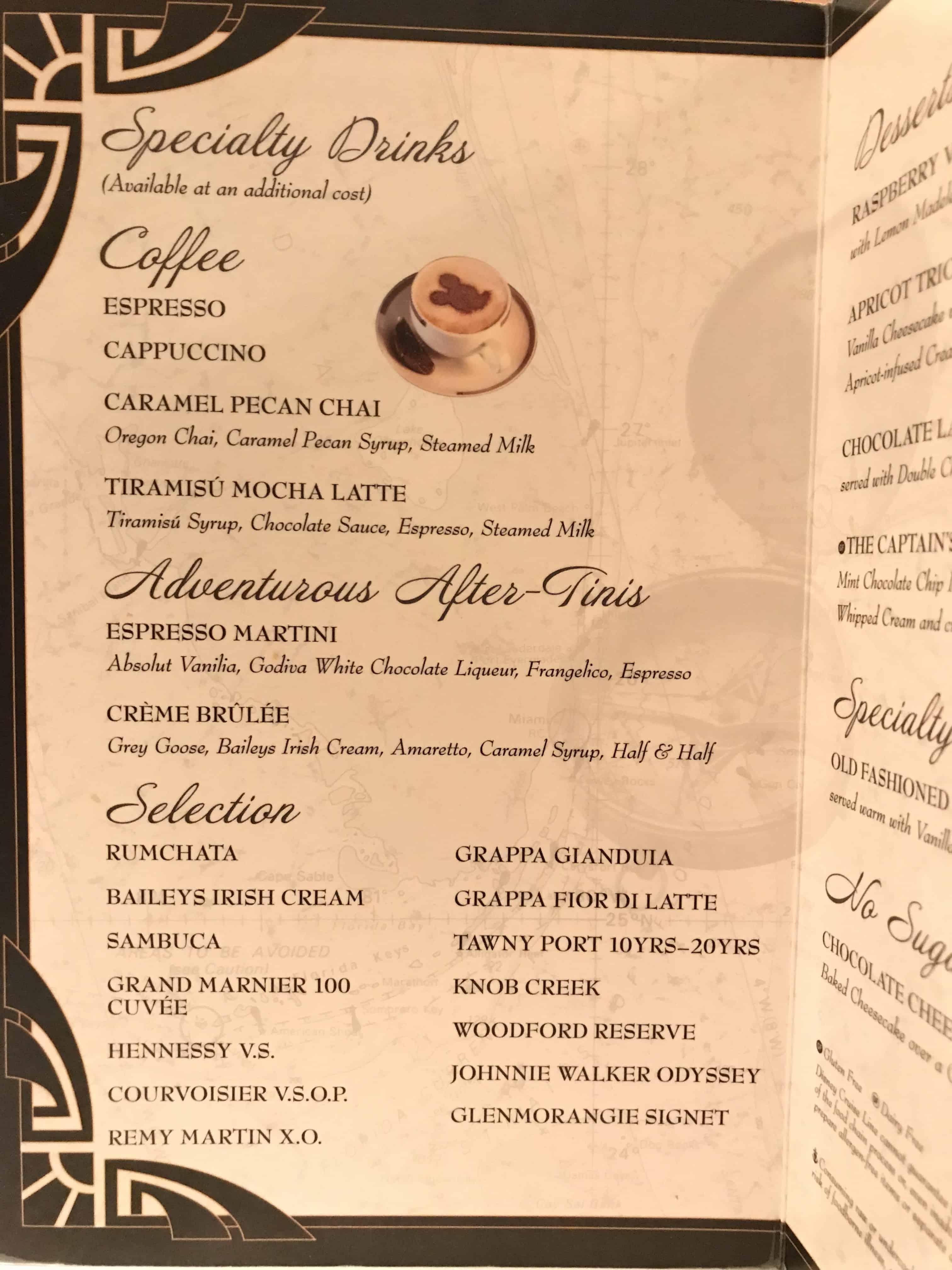 Here are her pictures (the dessert menu pictures are from our prior sailing on the Fantasy) :