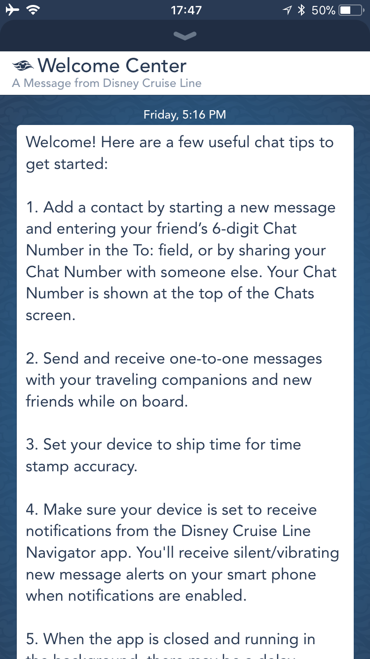 One of the best features of the app, in our opinion, is the chat feature. You can basically text with the rest of your party while you are on board the ship. We’ve had mixed success with it, but it seems to work more than it doesn’t. We have occasionally had to take a device to Guest Services or the Internet Cafe to get it working again, but they’ve managed to do the trick.