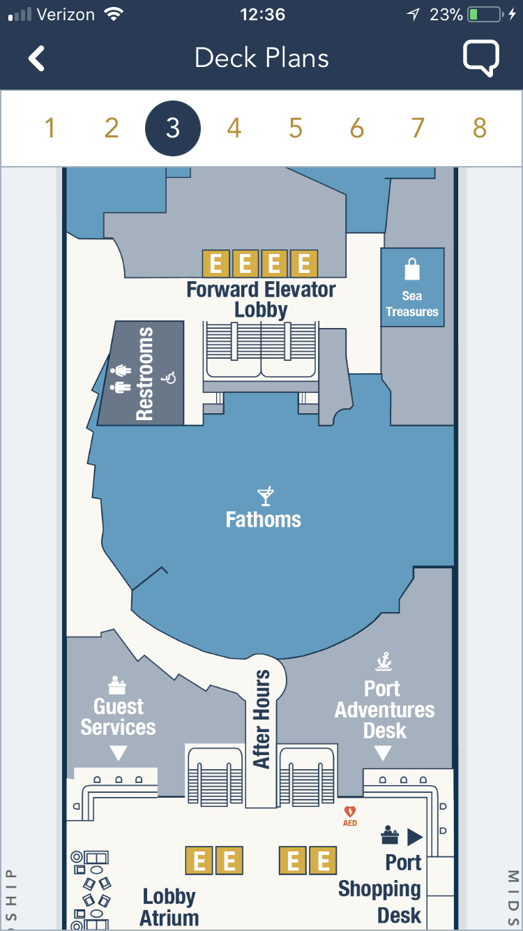 Another wonderful feature in the new app is the built in Deck Plans. You can select different decks and look a the available venues.