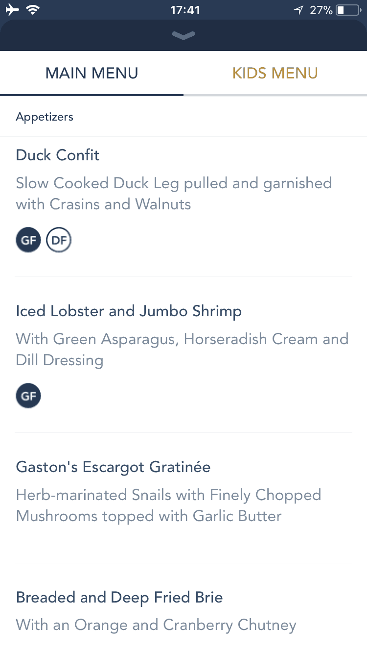 If you keep scrolling, you can bring up the menu for dinner that evening. The entire menu is available. One thing you can do is to move forward to each night of the cruise to see the menus for those nights based on your dining rotation.