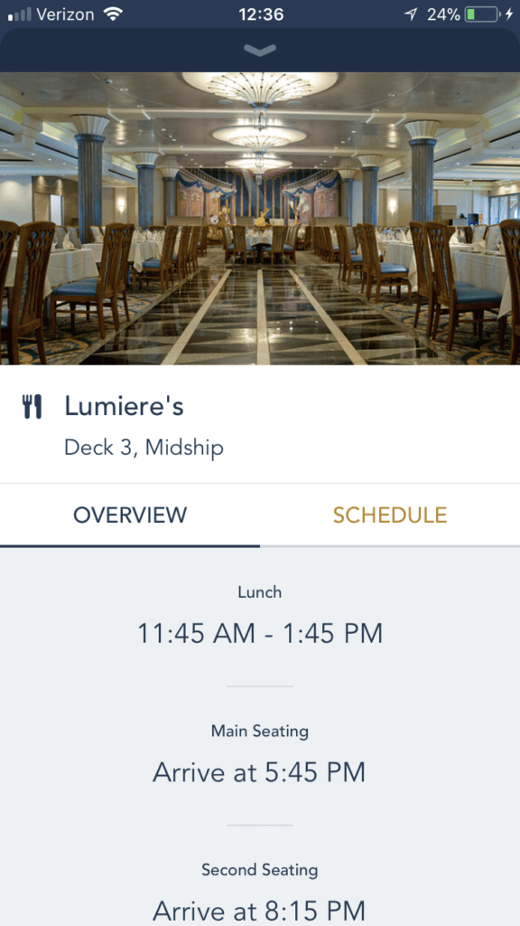 If you select one of the dining rooms, you will get a photo as well as the schedule.